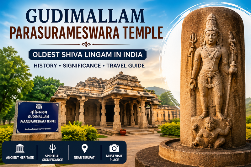 Located near Tirupati, the ancient Gudimallam Parasurameswara Temple is one of the oldest known Shiva temples in India. This unique temple is famous for its rare Shiva Lingam, believed to date back to the 2nd century BCE. Unlike typical lingams, this one features a carved human figure of Lord Shiva standing on a dwarf demon, making it a remarkable piece of early Indian sculpture. Surrounded by peaceful greenery and a calm rural setting, the temple offers a spiritual and historical experience for devotees and history lovers alike. The temple may not be very large, but its cultural and religious value is immense. Visiting this sacred place gives a glimpse into ancient Hindu traditions and architectural styles that have survived for thousands of years.